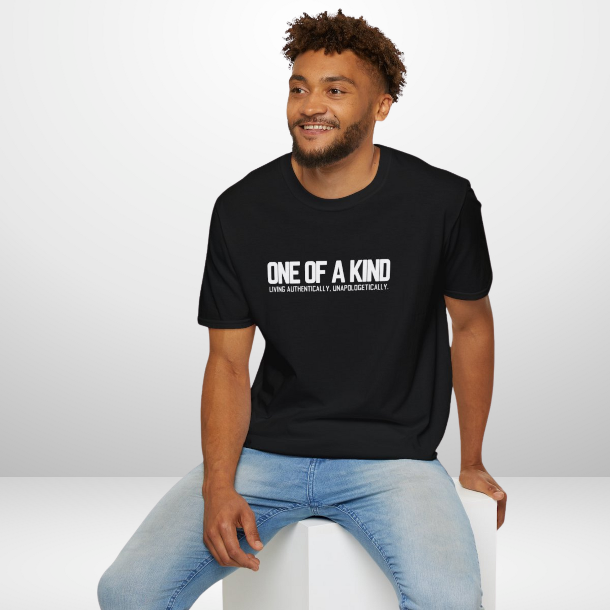 Express your true self with our "One of a Kind" graphic t-shirt, featuring the empowering quote: "Living Authentically, Unapologetically." This tee celebrates individuality and confidence, making it a perfect choice for those who embrace their uniqueness. Made with soft, breathable fabric, it's great for everyday wear or as a thoughtful gift for someone who inspires you. Perfect for anyone who values authenticity and isn't afraid to shine!